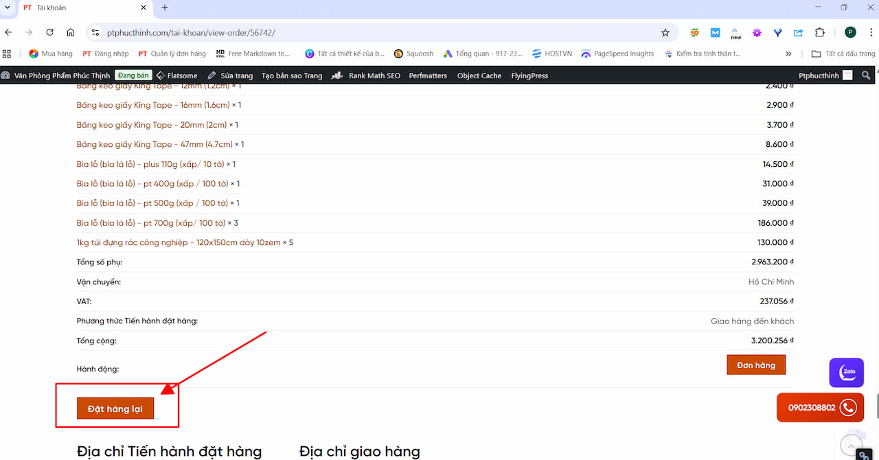 Bước 5: Kéo xuống cuối đơn hàng và nhấn nút “Đặt hàng lại”