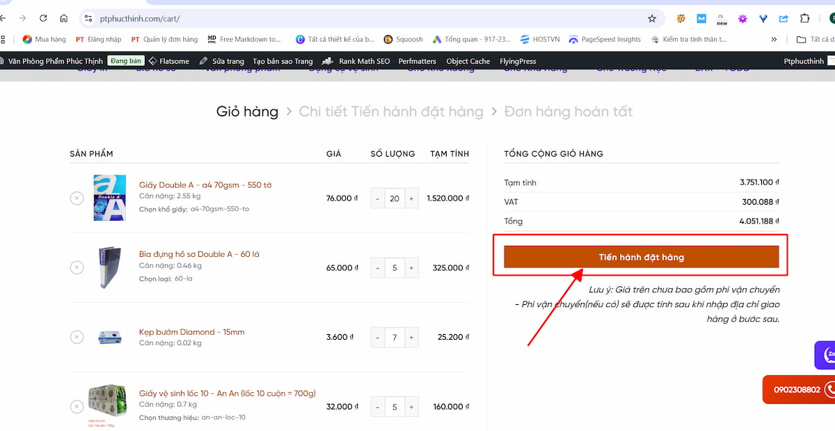 Bước 7: Kiểm tra lại tổng quan và nhấn “Tiến hành đặt hàng”.