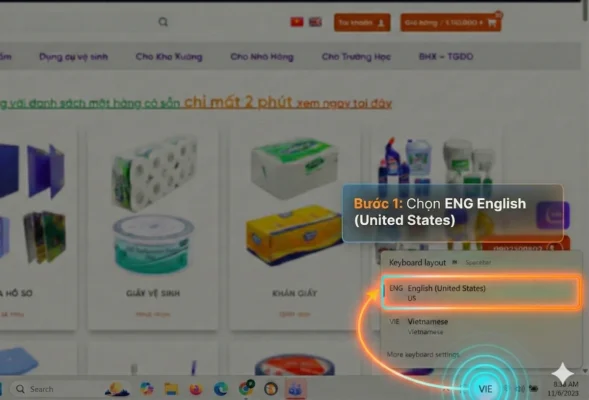 Bước 1: Chuyển chế độ bàn phím sang chế độ Tiếng Anh “ENG”