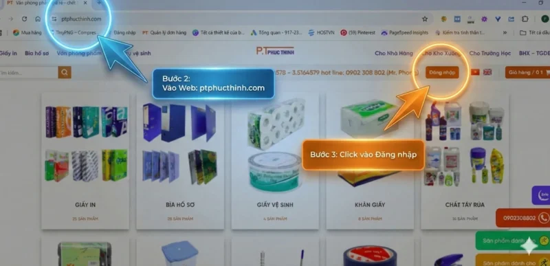 Bước 2 và 3: Vào website: PTPHUCTHINH.COM – NHẤN ĐĂNG NHẬP