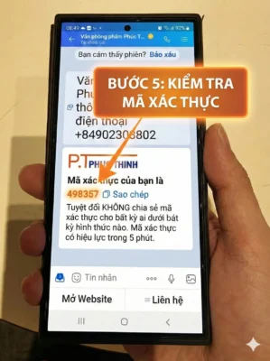 Bước 5: Mở Điện Thoại – kiểm tra tin nhắn Zalo để lấy mã xác thực 6 số